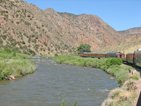 | June 25, 2008 Royal Gorge, Colorado This day was Royal Gorge day. I started off with a train trip through the Gorge and then ended the day with a visit to the bridge and park at the top. Also, see a rafter in the Gorge. |